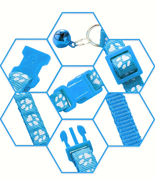 Veilige Kattenhalsband met Bel - Verstelbare Halsband met Pootpatroon en Snelsluiting