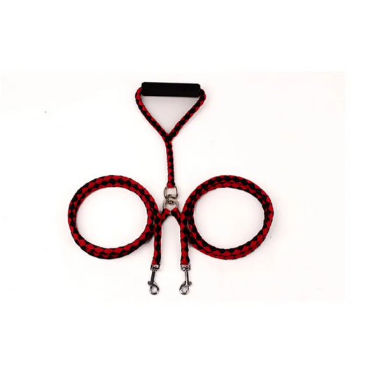 Twin Hondenriem in Geruit Patroon - Robuuste Riem voor Twee Honden