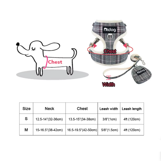 Gezellig Hondentuigje in Geruit Patroon met Riem - met Praktisch Hondentasje voor Wandelingen